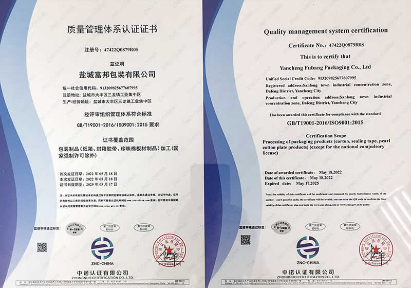 江鹽城富邦包裝有限公司創辦于2011年,地處環境優美的鹽城大豐區三龍鎮工業集中區,緊臨331省道和226省道,交通十分便利。是集研發、生產、經營為一體的中型私營企業,主要生產各種規格內、外銷中高檔瓦楞紙箱、彩色印刷、封箱膠帶、紙托盤、珍珠棉、EPS(泡沫)成型、免模、大板裁片的專業工廠,年產瓦楞紙箱達400萬平方米、封箱膠帶260萬平方米、EPS泡沫10萬立方米以上。工廠占地8000平方米,生產廠房近3000平方米,擁有進口1020秋山四色膠印機,生產工藝先進,檢測手段齊全,品質服務保證,本公司已通過ISO9001:2015國際質量體系認證,并嚴格持續遵照體系認證及商檢部門要求組織生產和經驗管理。。。。。。 |